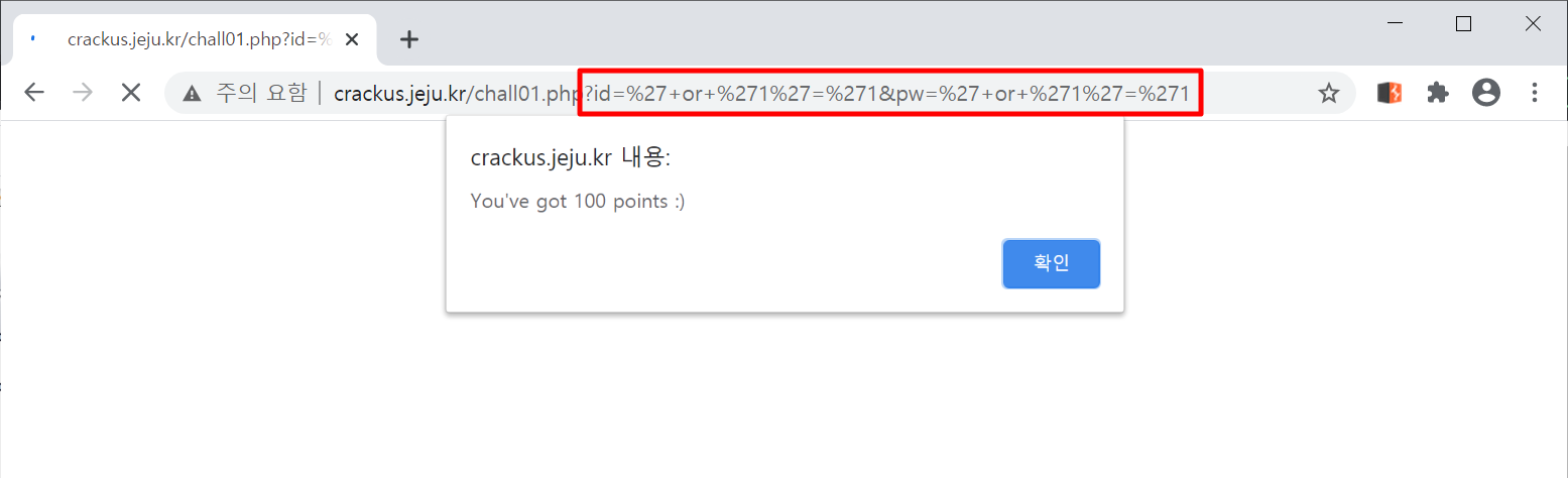 위와 같이 URL 뒤에 id와 pw를 GET방식으로 입력하여 전송해보니 레벨 클리어가 되었다.
