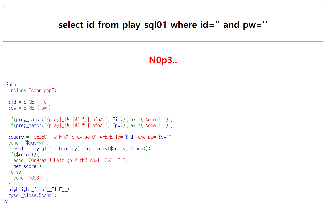 preg_match로 입력값에 대한 필터링을 주고 있다.