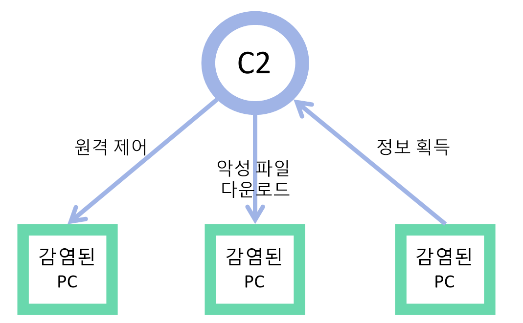 해석하면 명령 및 제어인데, 말 그대로 피해자의 장비에 침투한 악성코드를 원격에서 제어하고 명령을 내린다.