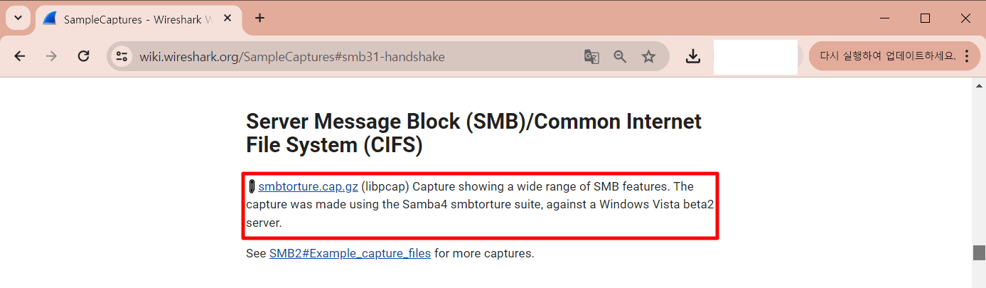 와이어샤크 위키에서 SMB 샘플 패킷을 주워다가 실습을 하겠다.
