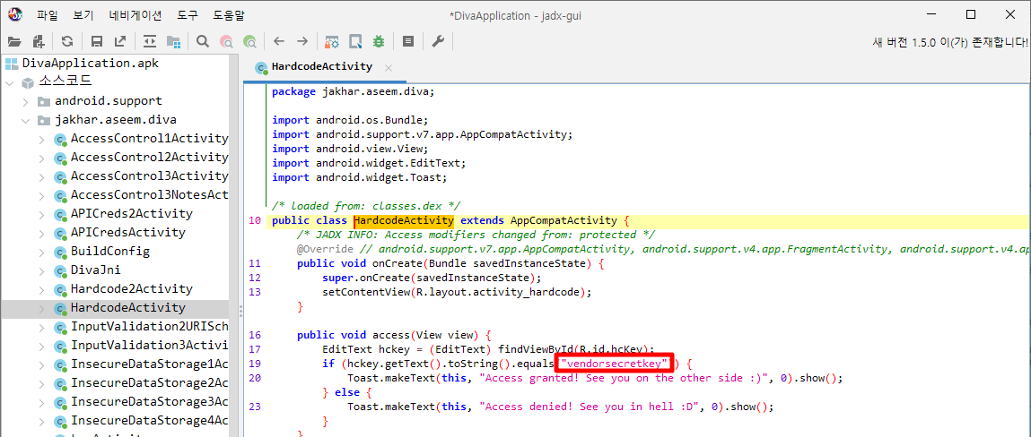 [모바일 취약점 진단 실습 2. HARDCODING ISSUES - PART 1]