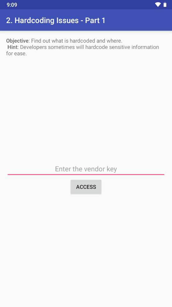 2. HARDCODING ISSUES - PART 1 을 클릭하면 어떤값이 어디에 하드코딩되어있는지 찾아서 입력하는 문제가 나온다.