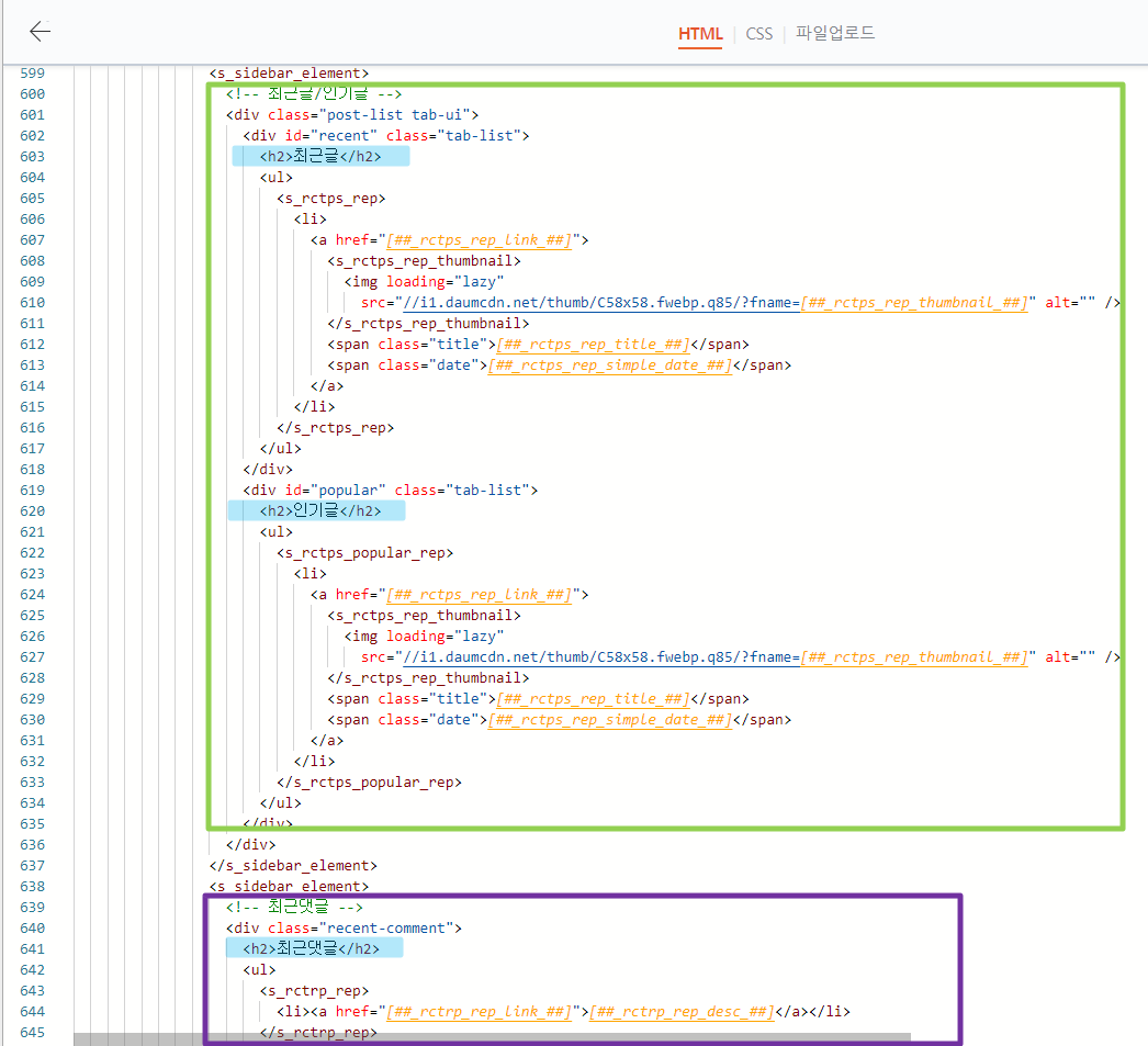 사이드바에 있는 구역도 깔끔하게 div로 정리가 되어있는 것을 확인 가능하다.