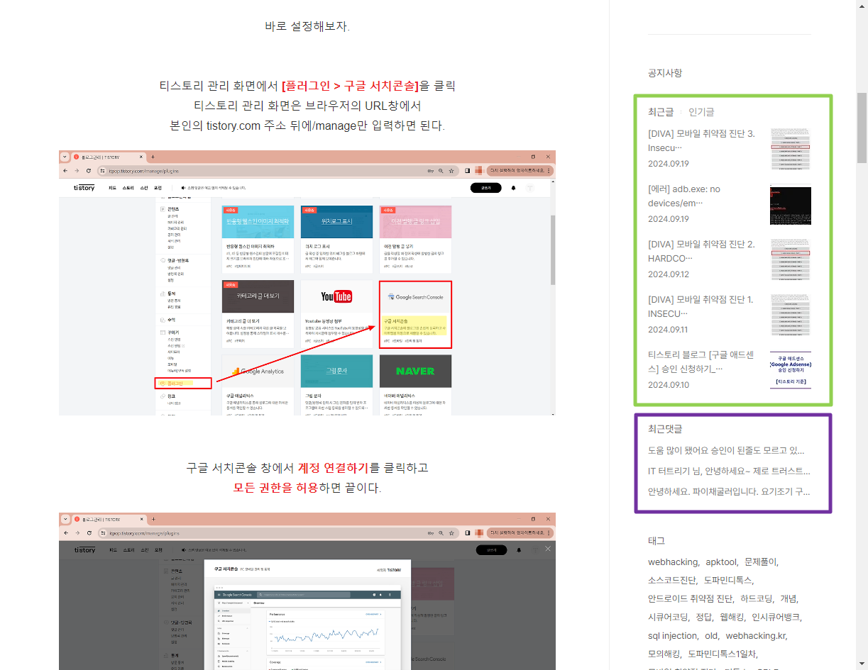 tistory의 스킨 편집>html에서 div태그를 확인해보면 이해가 빠르게 된다.