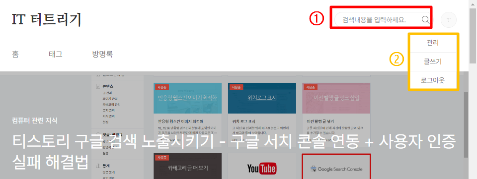tistory의 검색창과 프로파일을 div class로 영역 구분해놓은 것을 확인 가능하다.