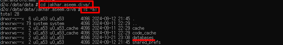 앱 내부 저장소인 databases의 위치, 저장된 정보를 보는 방법을 배웠으며, 해당 공간에 중요정보가 평문으로 저장되면 취약하다는 것을 알 수 있었다.