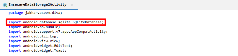 import로 선언된 패키지를 보면 SQLiteDatabase를 사용하고 있는 것을 확인 가능하다.