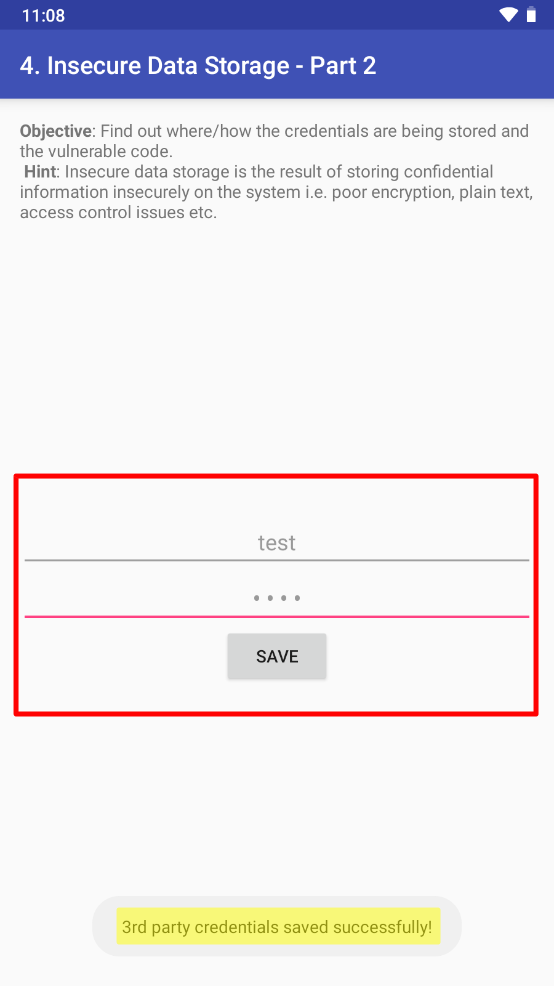 4. Insecure Data Storage - PART 2 을 클릭하면 유저네임과 패스워드가 어디에 저장되는 지 확인하는 문제가 나온다.