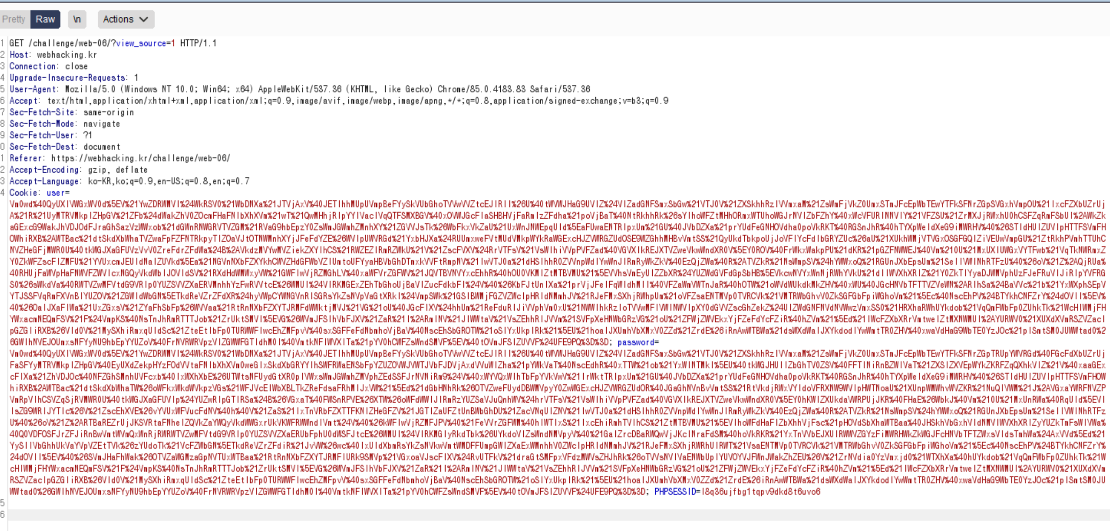 버프슈트로 view-source 링크로 넘어갈 때의 값을 보니 으마으마하게 긴 ID와 PW가 보인다.